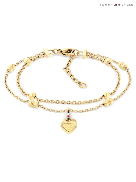 Tommy Hilfiger Gold Tone Played Layered Chain Bracelet