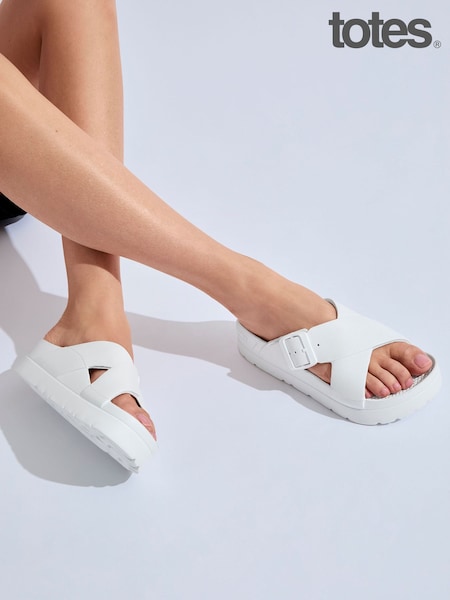 Totes White Solbounce Ladies Cross Front Buckle Sliders