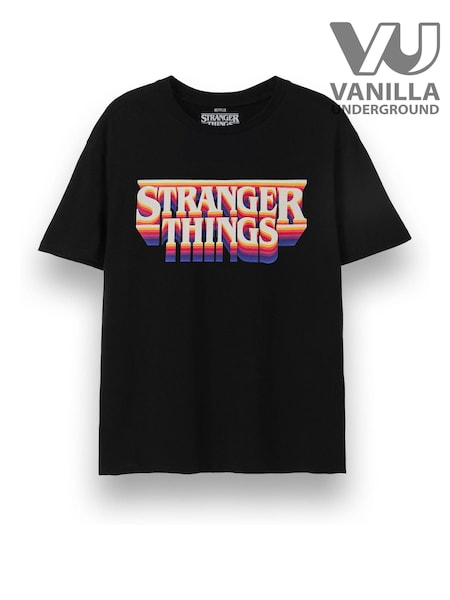 Vanilla Underground Black Stranger Things Retro Logo Short Sleeved T-Shirt