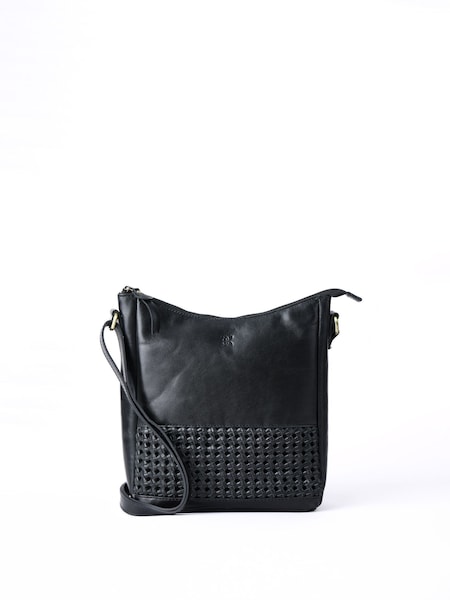 Lakeland Leather Black Waverton Woven Medium Cross-Body Bag