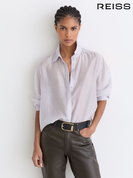 Reiss Navy Elora Leather Oval-Buckle Belt