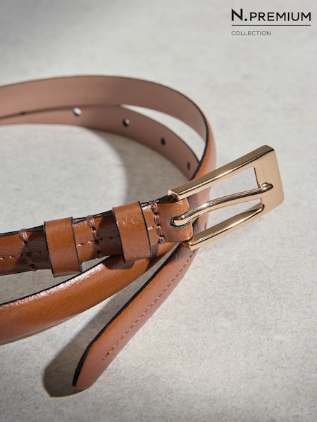 Tan Brown N. Premium Skinny Made In Italy Leather Belt