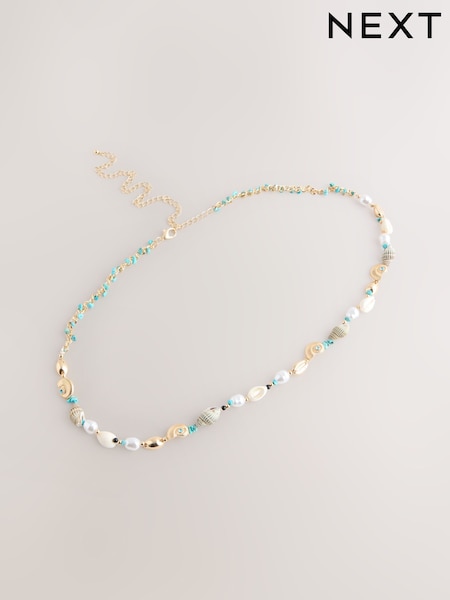 Gold/Blue Skinny Shell Chain Belt