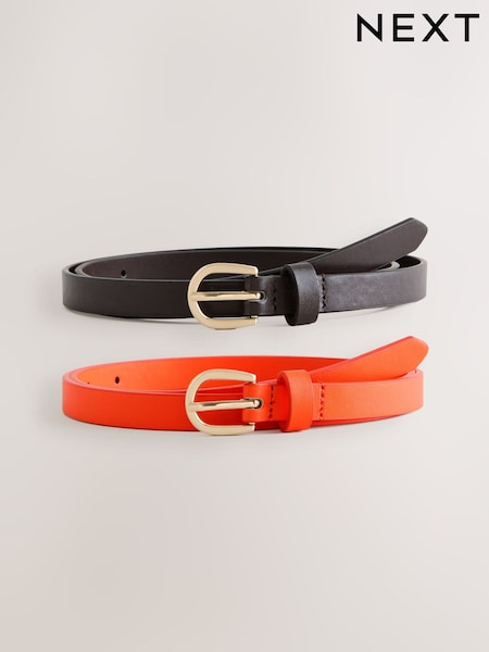 Chocolate Brown/Orange Skinny PU Belts 2 Pack