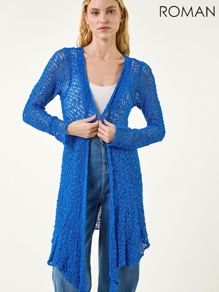 Roman Blue Popcorn Knit Longline Cardigan