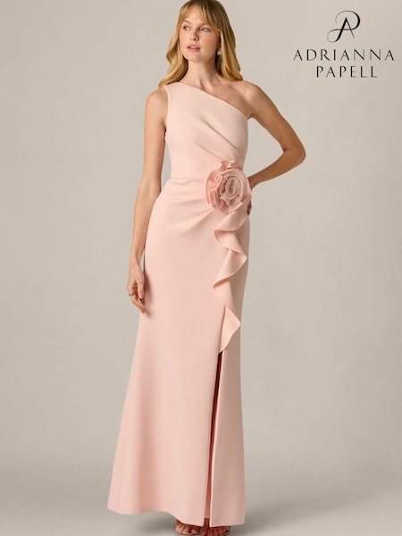 Adrianna Papell Pink Petite Scuba Rosette Long Gown