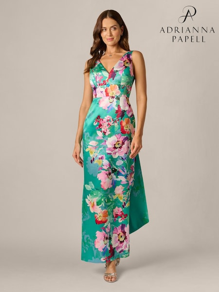 Adrianna Papell Green Printed Mikado Bow Back Gown