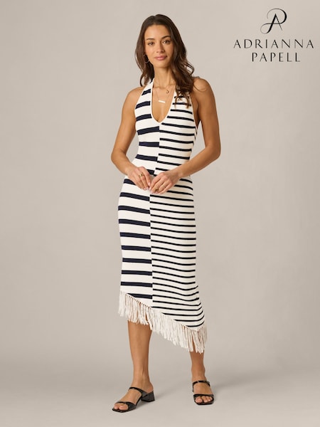 Adrianna Papell White Studio Beaded Knit Crepe Gown