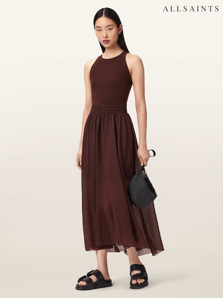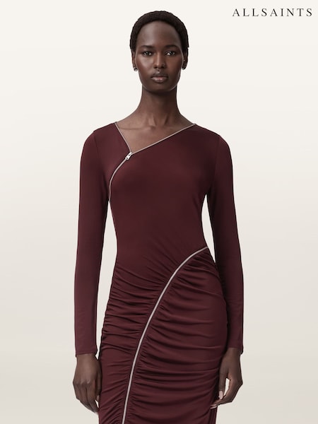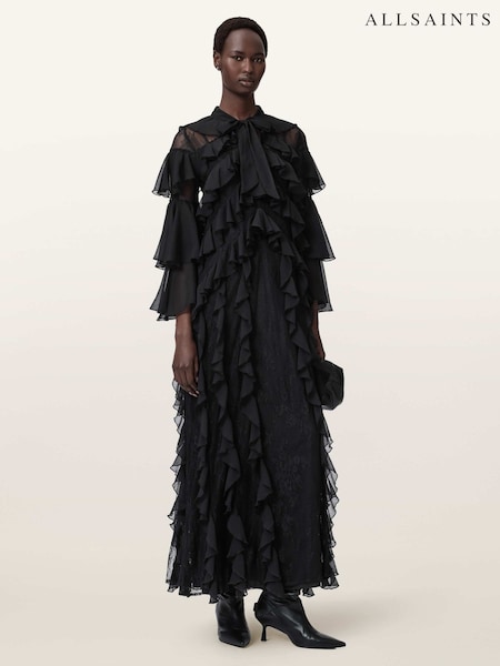 AllSaints Black Bryony Black V-Neck Midi Dress