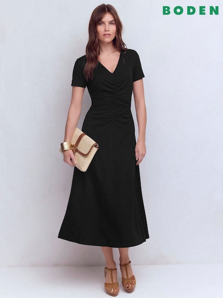 Boden Black Mia V-Neck Jersey Midi Dress