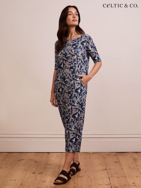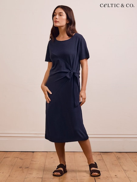 Celtic & Co. Blue Linen Blend Knot Detail Dress