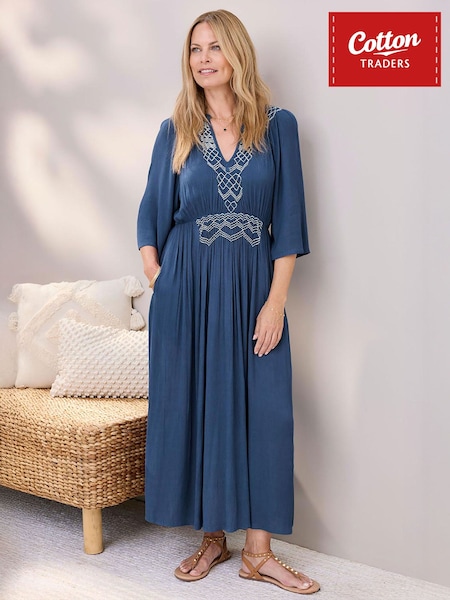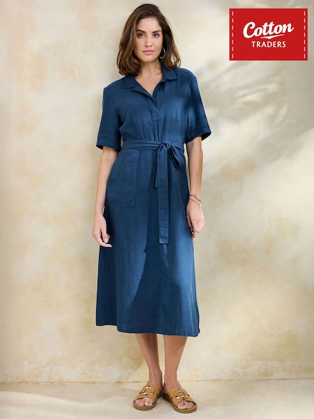 Cotton Traders Blue Textured Jersey Midi Shirt Dress