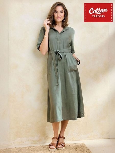 Cotton Traders Green Linen Blend Midi Dress