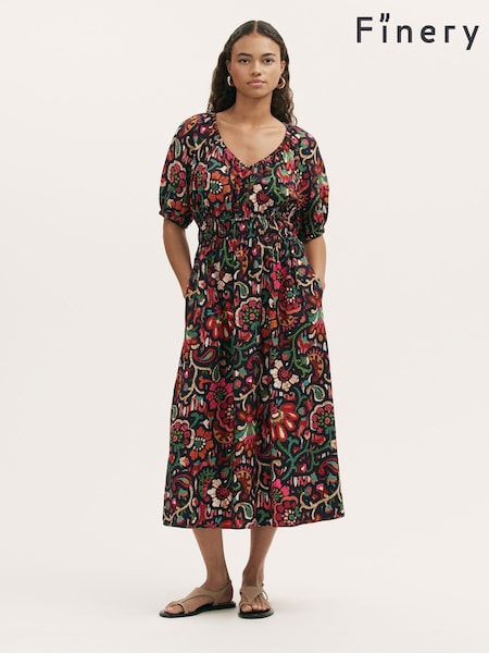 Finery Black Estee Floral Print Midi Dress