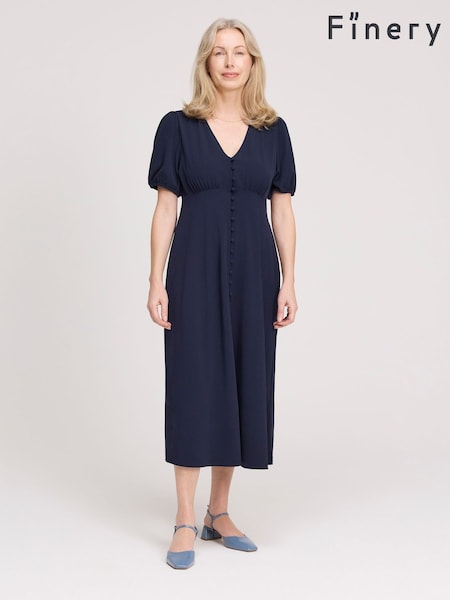 Finery Blue Robyn Button Through Midi Dress