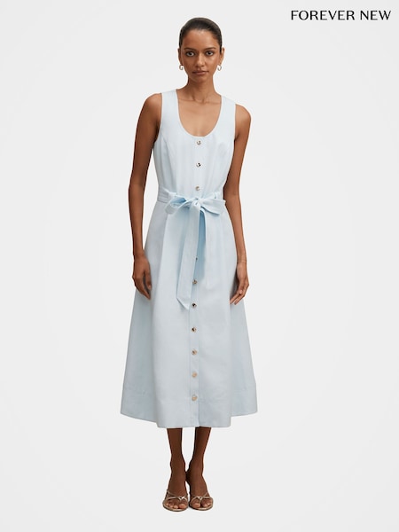 Forever New Blue Priscilla Petite Button Down Contains Linen Midi Dress