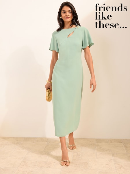 Friends Like These Pistachio Green Petite Assymetric Hardwear Tailored Midi Dress