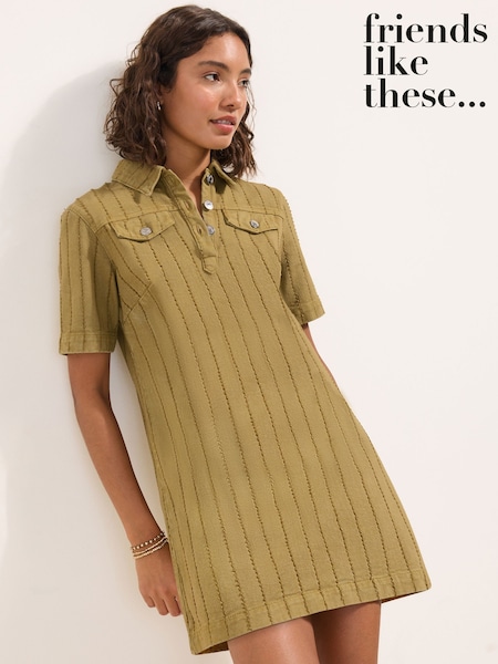 Friends Like These Olive Green Denim A-Line Mini Dress