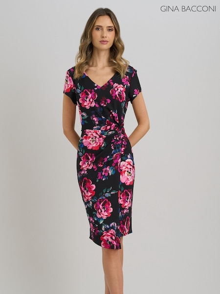 Gina Bacconi Black Joely Placement Floral Print Dress