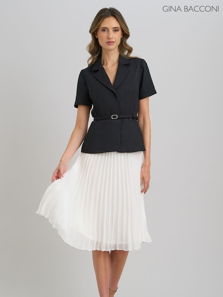 Gina Bacconi Black Shelley Belted Pleated Midi Dress