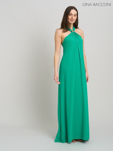Gina Bacconi Green Marcie Chiffon Tie Neck Maxi Dress