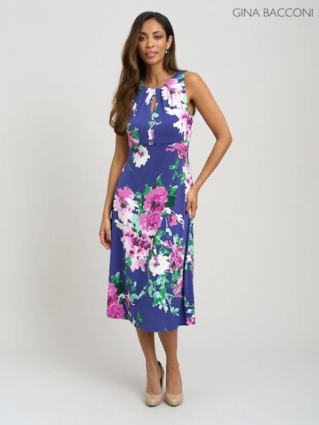 Gina Bacconi Blue Wilhelmina Floral Print Dress