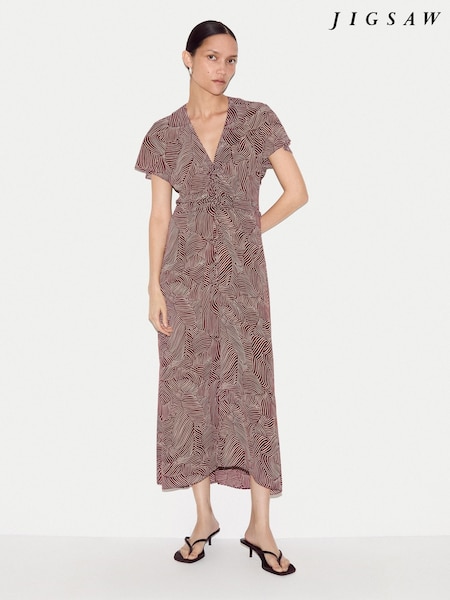 Jigsaw Red Optic Swirl Crepe Ruched Dress