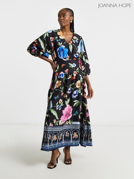 Joanna Hope Black Shirred Sleeve Maxi Dress