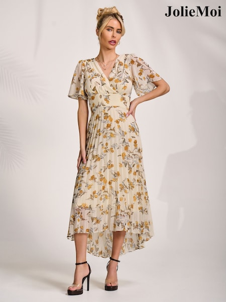 Jolie Moi Orange Floral Pleated Dip Hem Maxi Dress