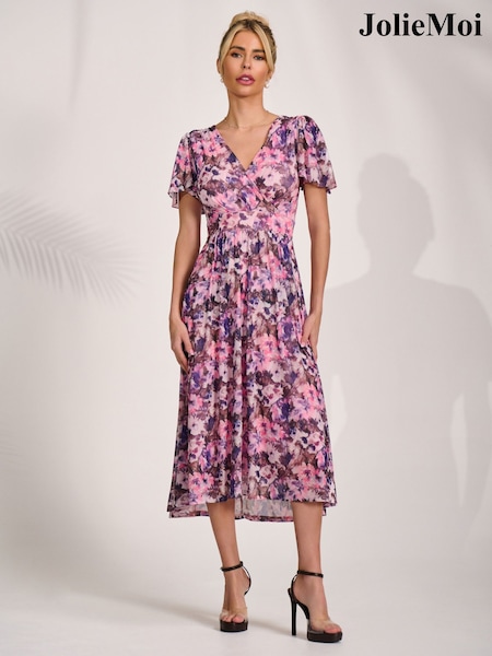 Jolie Moi Pink Floral Pleated Dip Hem Maxi Dress