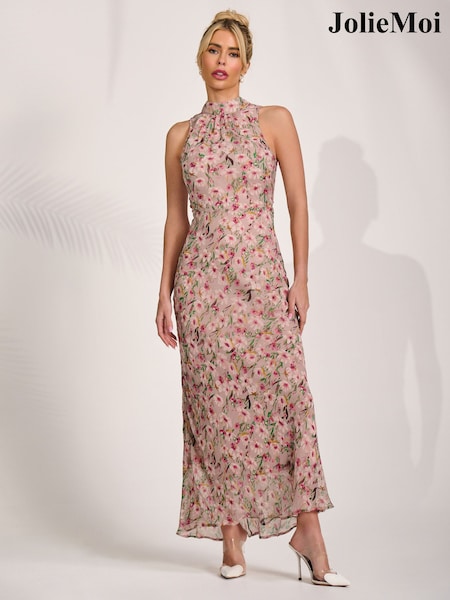 Jolie Moi Pink Printed Halter Neck Midaxi Dress