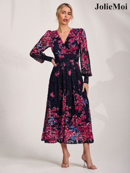 Jolie Moi Pink Long Sleeve Printed Lace Maxi Dress