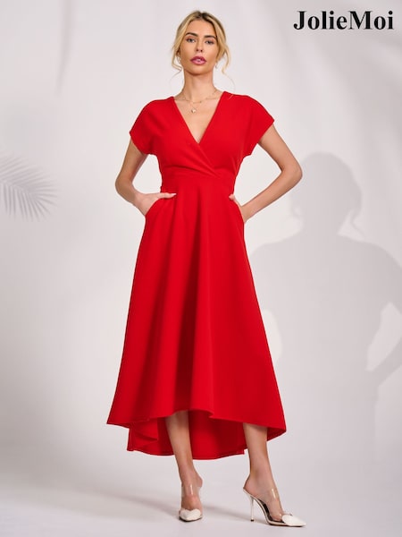 Jolie Moi Red Fold Neckline Midi Dress
