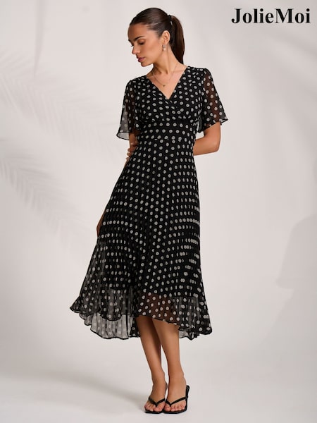 Jolie Moi Dark Black Ruffle Detail Chiffon Midaxi Dress