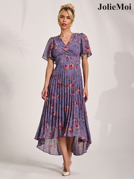 Jolie Moi Purple Printed Chiffon Pleated Maxi Dress