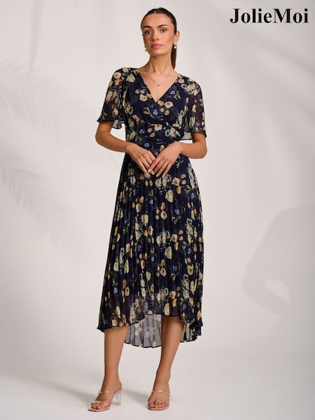 Jolie Moi Blue Pleated Chiffon Maxi Dress