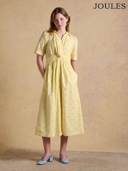 Joules Marina Brown Polka Dot Midi Linen Blend Dress