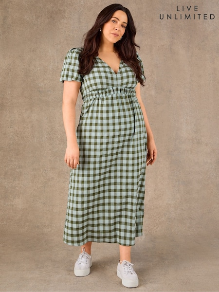 Live Unlimited Green Gingham V-Neck Midaxi Dress