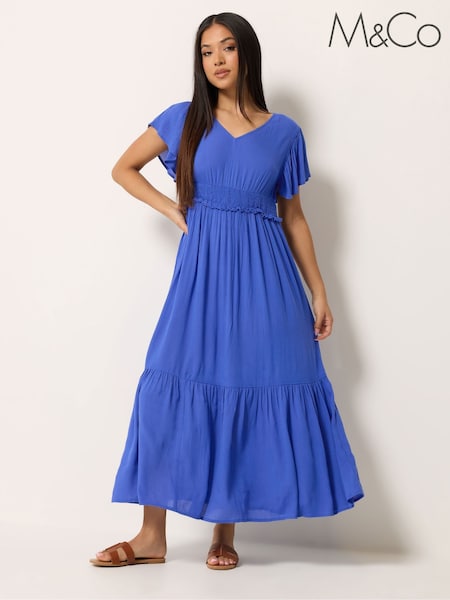 M&Co Blue Petite Shirred Waist Maxi Dress