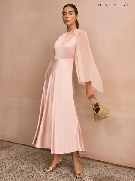 Mint Velvet Red Scallop Jersey Mix Midi Dress