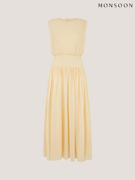 Monsoon Yellow Georgia Drop Hem Midi Dress