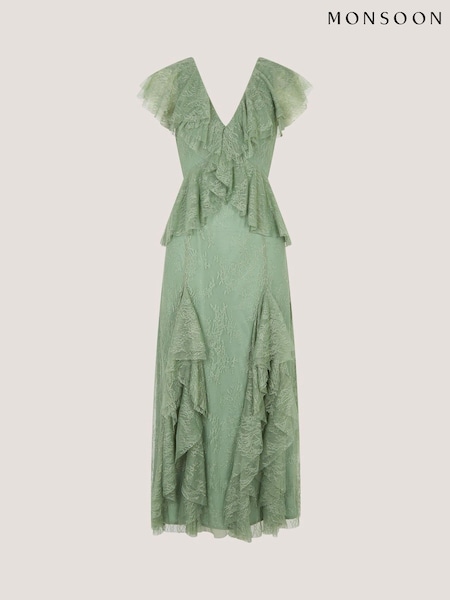 Monsoon Green Alda Ruffle Lace Midi Dress