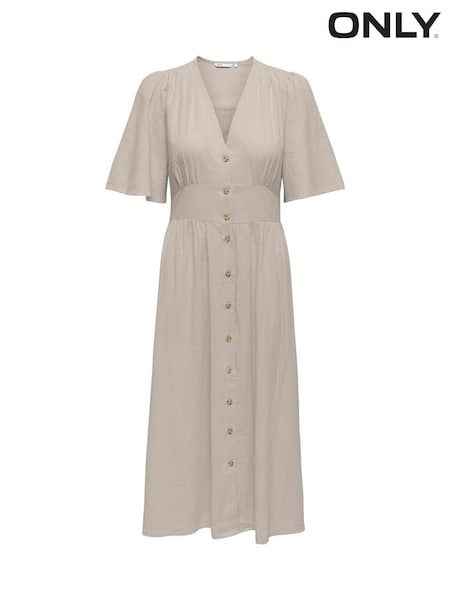 ONLY Cream Short Sleeve Button Through Midi Shirt Dress with Linen