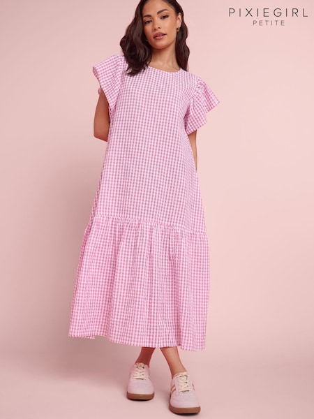 PixieGirl Petite Pink Gingham Drop Waist Midaxi Dress