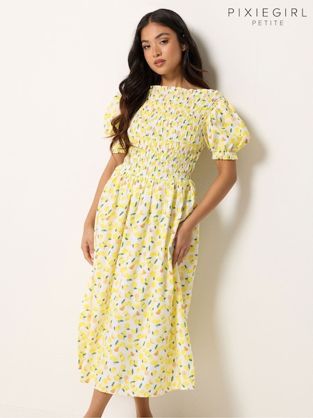 PixieGirl Petite Yellow Shirred Midi Dress