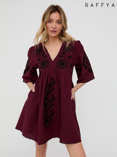 Raffya Purple Arabella V-Neck Embroidered Mini Dress