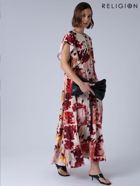 Religion Orange Sienna Maxi Occasion Tea Dress With Cute Sleeves