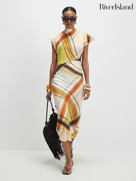 River Island Khaki Ruffle Collar Tie Waist Mini Dress