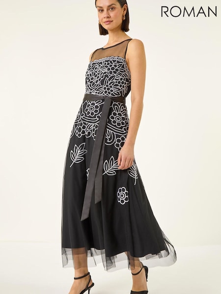 Roman Black Floral Embroidered Dress