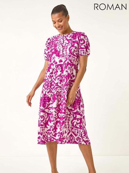 Roman Pink Abstract Print Midi Shirt Dress